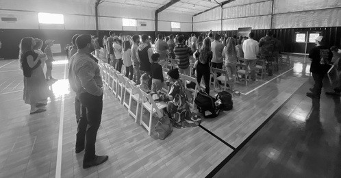 The first building on the right is what we refer to as "The Barn". Here, you can check in your kids Newborn to Fifth grade. Once kids 0-4 are checked in, they can go directly to class. Kids K-5 will come in the gym for worship music with the adults! We love this time together and feel that it is important for families to worship together. Following the worship music, kids K-5 will be dismissed to their class and a teacher will be at the back of the gym to walk them over.